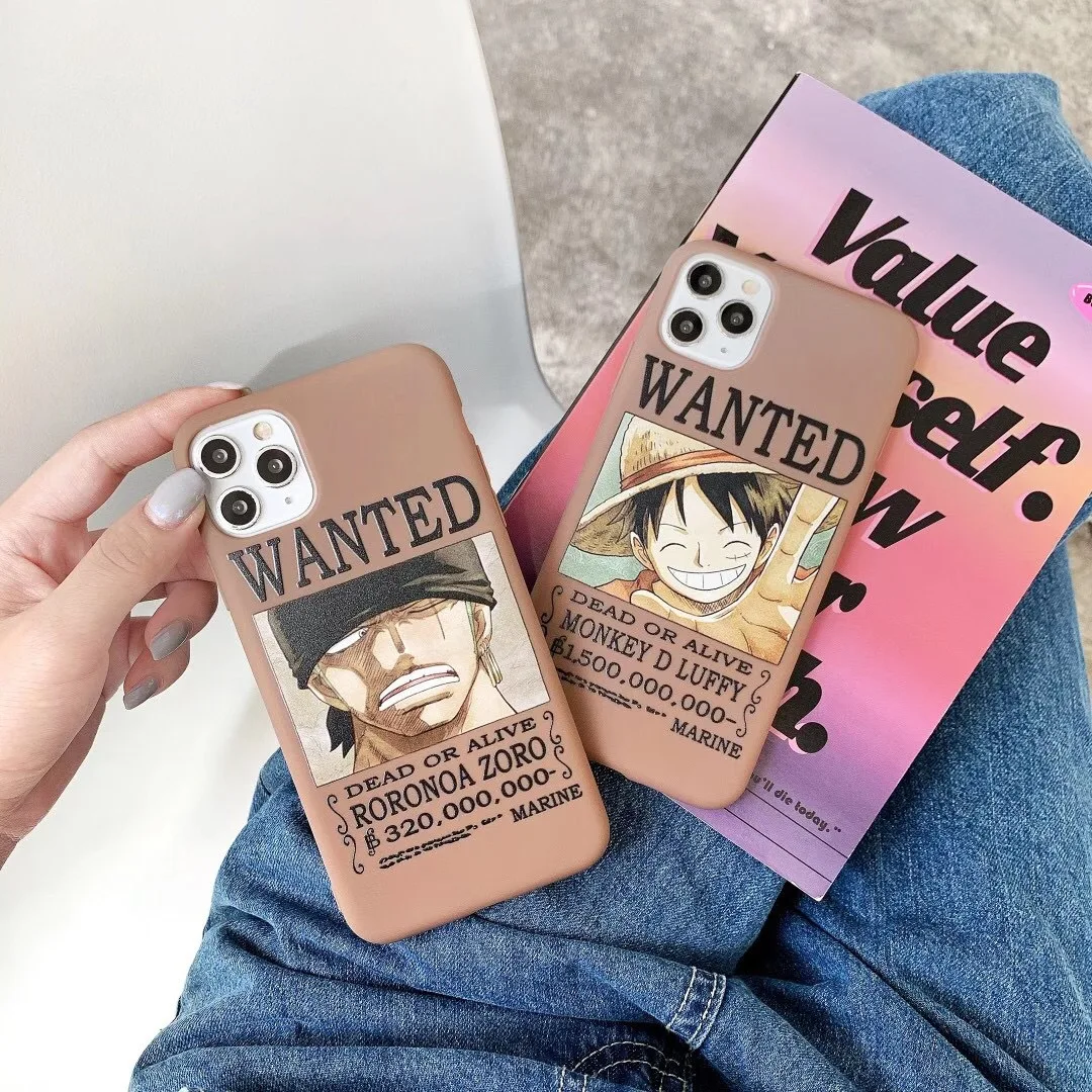Anime One Piece Piratesreward Phone Case pour iPhone 13 11 12 Pro Max 7 8 Plus XR XS Max Luffy Wanted Phone Cover Back Shell pour femmes hommes enfants fans cadeau