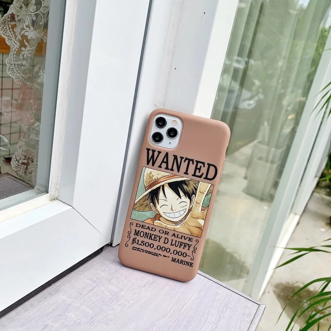 Anime One Piece Piratesreward Phone Case pour iPhone 13 11 12 Pro Max 7 8 Plus XR XS Max Luffy Wanted Phone Cover Back Shell pour femmes hommes enfants fans cadeau